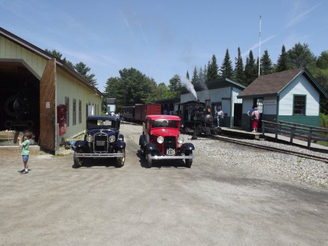 The middle photo in the photos my dad posted was really neat. You get the train, model A, Model B, and #9 under reconstruction, with a little boy in front of it taking a picture of the railroads Model A truck, just out of sight to the left of the picture.