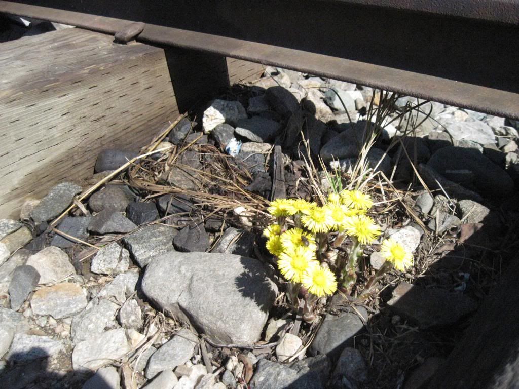 It was good to see ya yesterday.  I was gonna to ask the yearly question - "Spring is sprung, the grass is rizz, I wonder where the flowers is" but you answered it nicely.  Those flowers came up as soon as Big Joe was moved off that part of the siding.