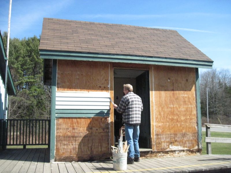 Stewart Rhine took full advantage of the weather to continue with refurbishing the station office. After 20 years (I think that's he figure he gave) the elements have taken their toll.