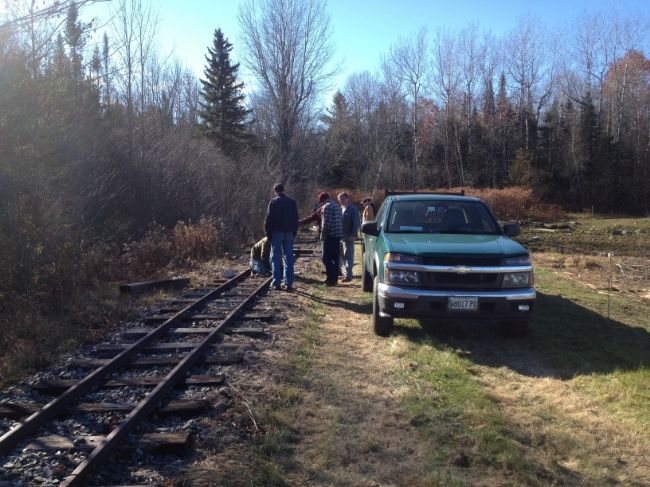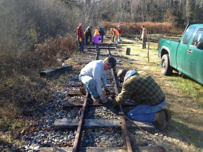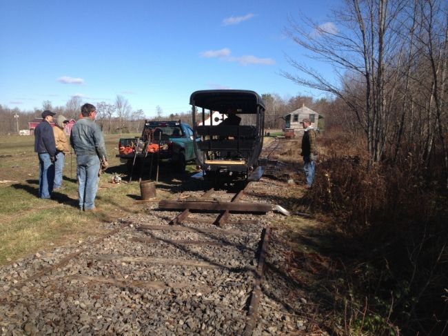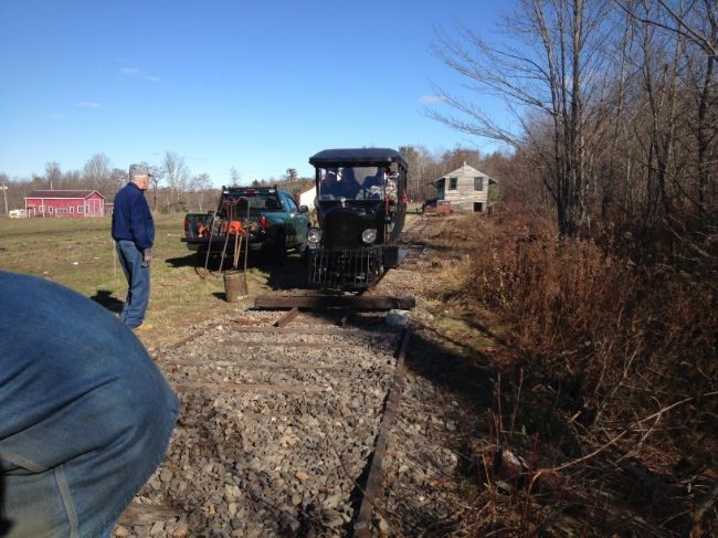 Visitors were told that today was the first time a Model T railcar has been to Albion in over 80 years and many were happy to hear it. Some passengers were savvy enough to request a stop in Coopers Mills or Whitefield. By the end of the day the railcar had carried about 35 people. The trip got longer as the track crew got more of the mainline in service. It was nice running the railcar southward, almost to the culvert near the woods.