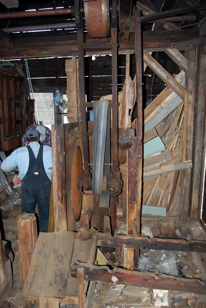 Open door in the side of the building is where logs fed into the building to the chop saw.