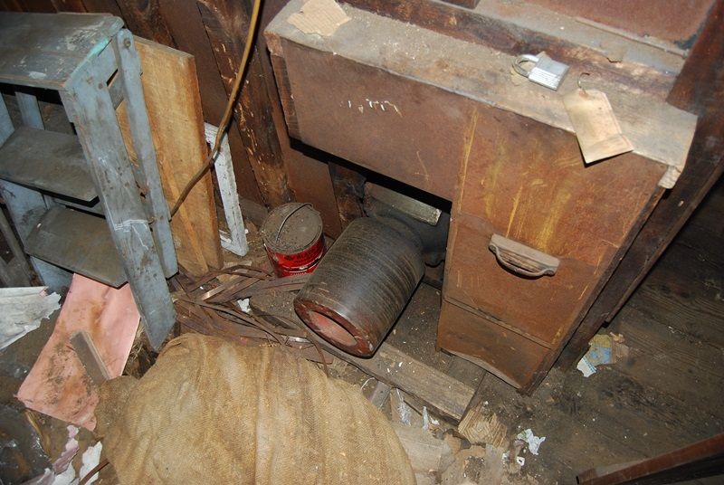 General inside pictures. Remember about 12 pickup loads of stuff have come out of here and half a 20 yard dumpster filled up. My first visit was on the second clean out trip and you couldn't see the floor. The black box is a WWII vintage hobart generator that was buried in the building.