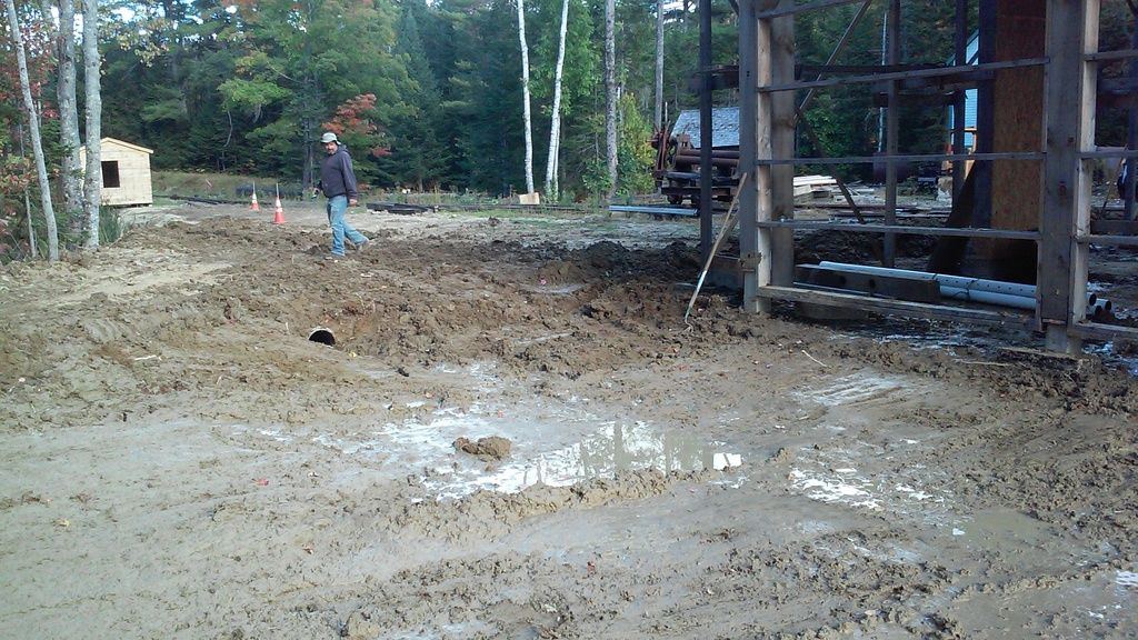 Nice to know the roof is complete, standing water is gone, a drainage system now exists, sheathing can soon start.