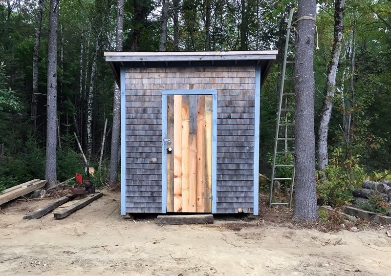 * Car barn: The east side roofing is now done. Zack worked on plywood on the door end (as a stiffener). Meanwhile Mike used the dozer to remove dirt from the sides of the barn outside (both sides), then removed the piled up dirt underneath the walls. He also sprinkled dirt in some low places inside.