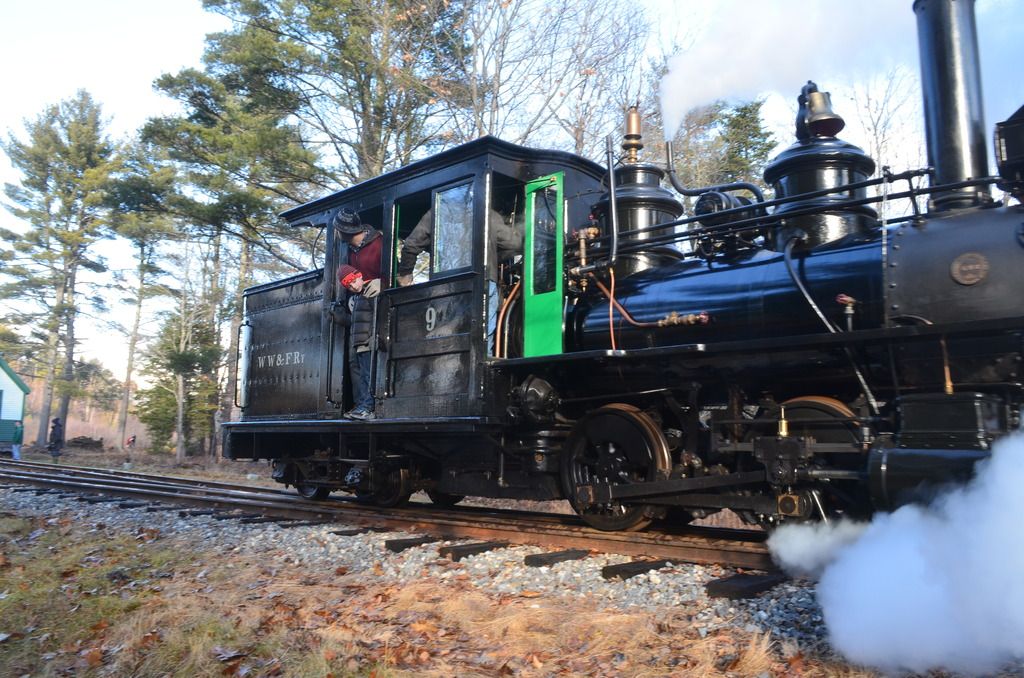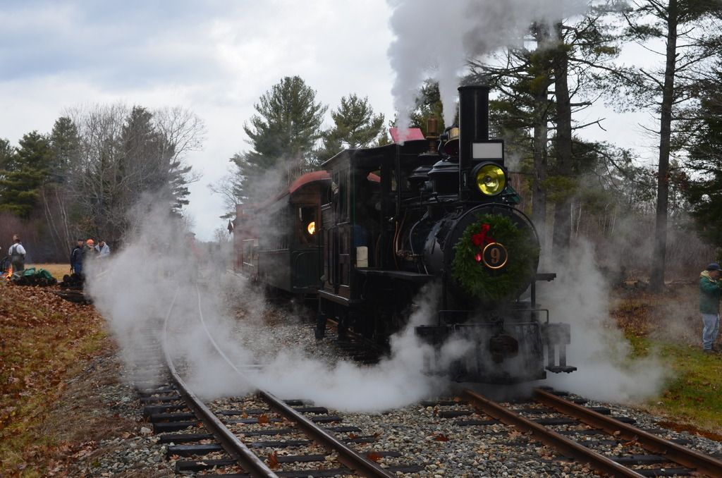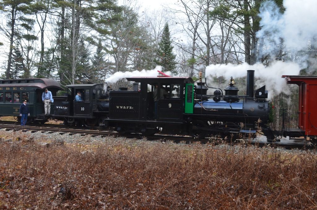 * Loco 9: fired up in part for additional testing, and in part because the local ABC affiliate, WMTW Channel 8, showed up to film us in advance of next Saturday.  We'll be on their morning show at 7:15 next Saturday, and also on their website at some point.  First trip was just coach 3 (after WMTW interviewed Dave B and Gordon D) to Alna Center and back.  After lunch we 320 and 309 up to Alna Center, then down the Ladder and back up to give #9 a bit of a test.