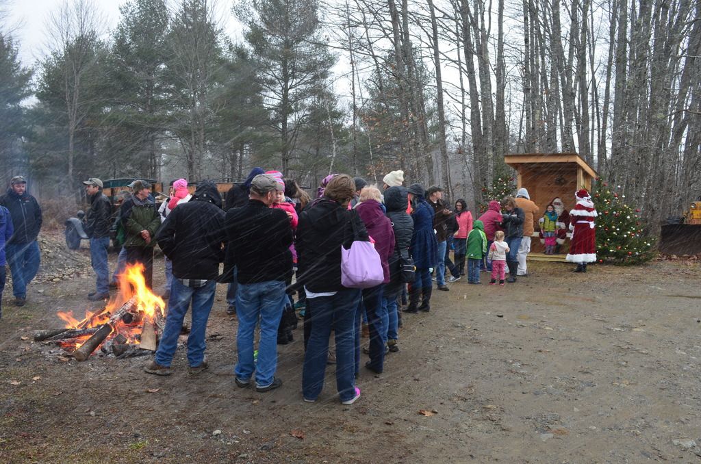 A line to see Santa.  Yes, that's snow.  We had a few snow showers