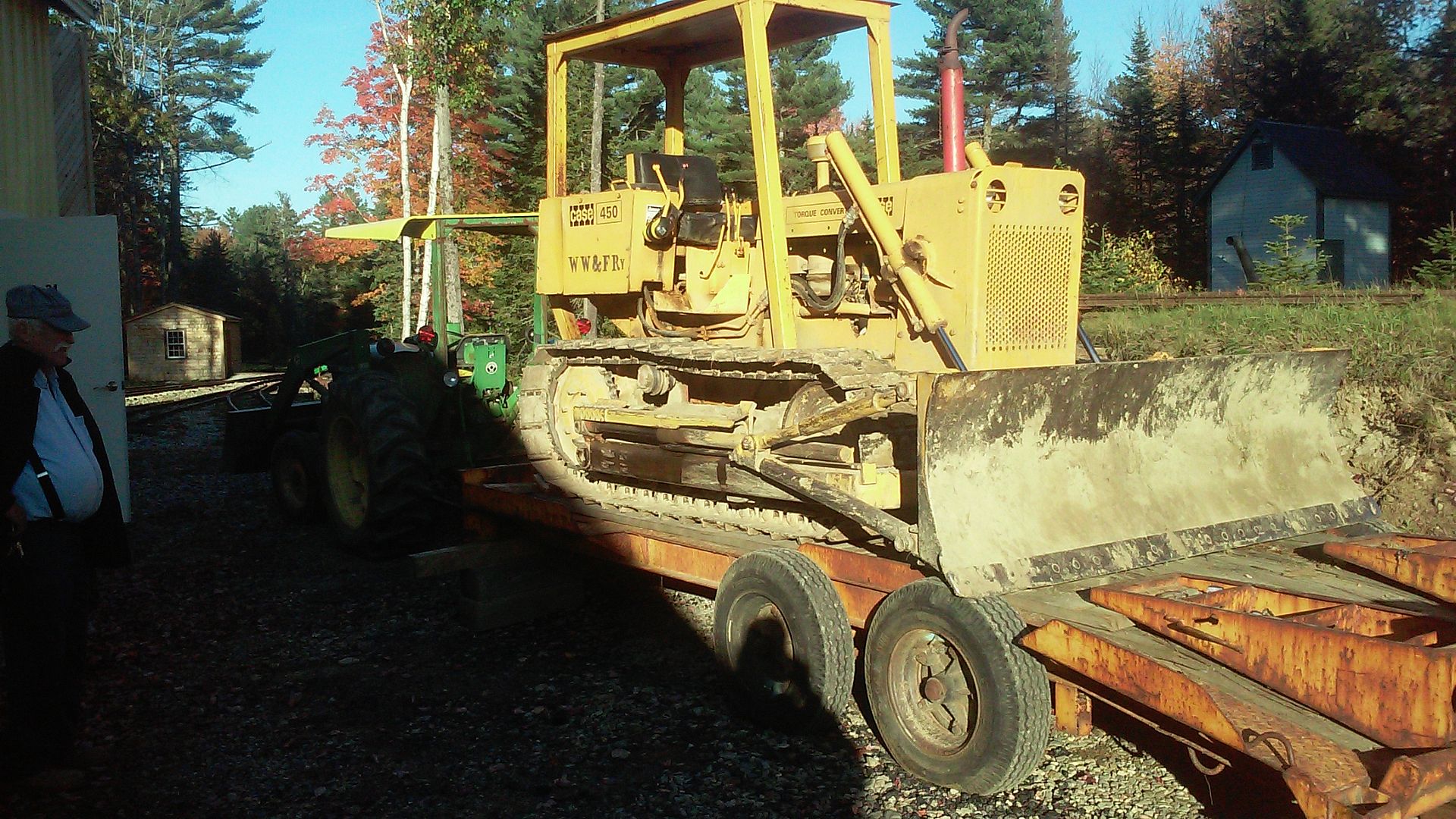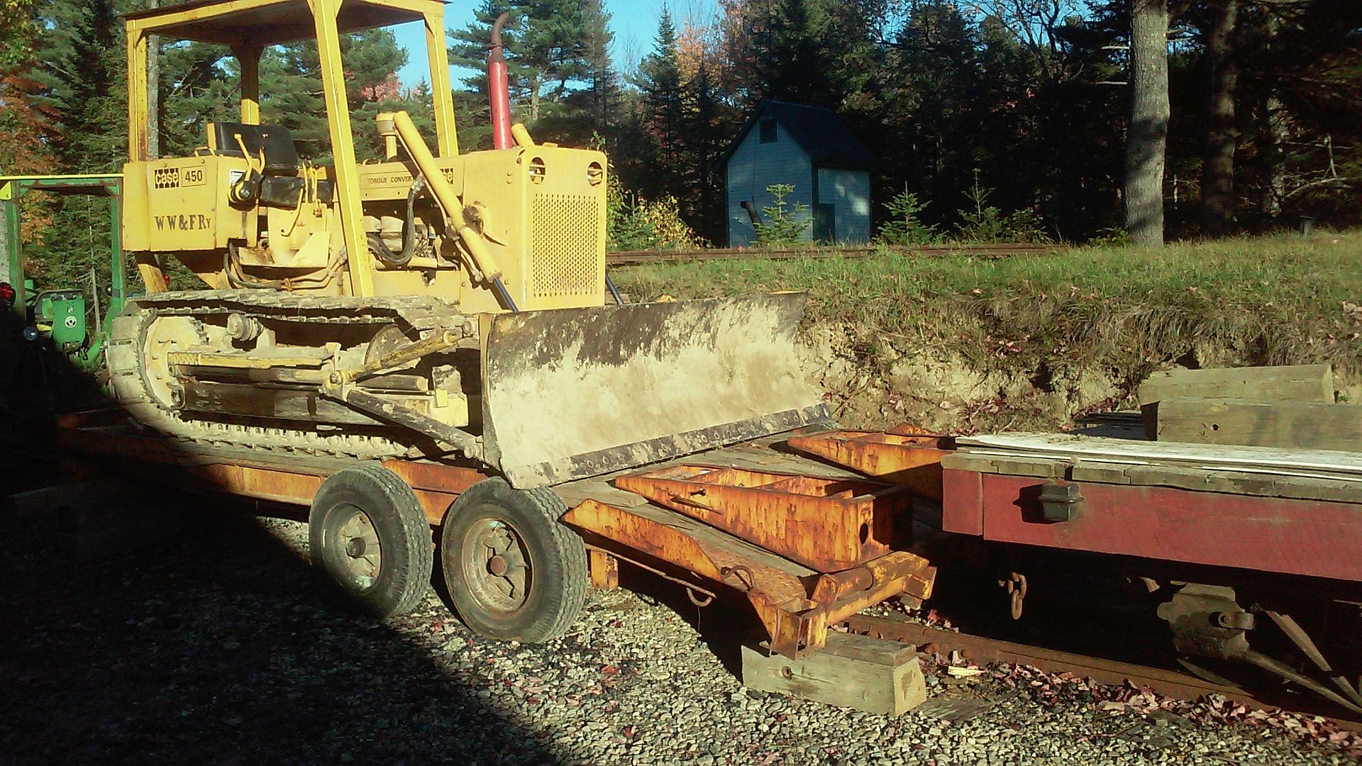 * Top of Mountain: Mike did more grading work, then loaded the bulldozer on the flatcar (brought up on the 2:30 train) and brought it back.