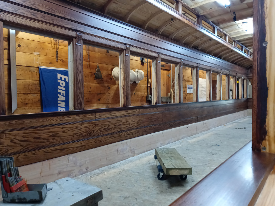 Of course, other cars have been rebuilt with all new wood such as flatcar #14 for the MNG SOCONY tank car and former B&SR flat 34. B&SR boxcar 67 is another example of a complete rebuild while stock/boxcar 56 is more of a restoration with Marcel preserving as much of the original wood structure as possible.