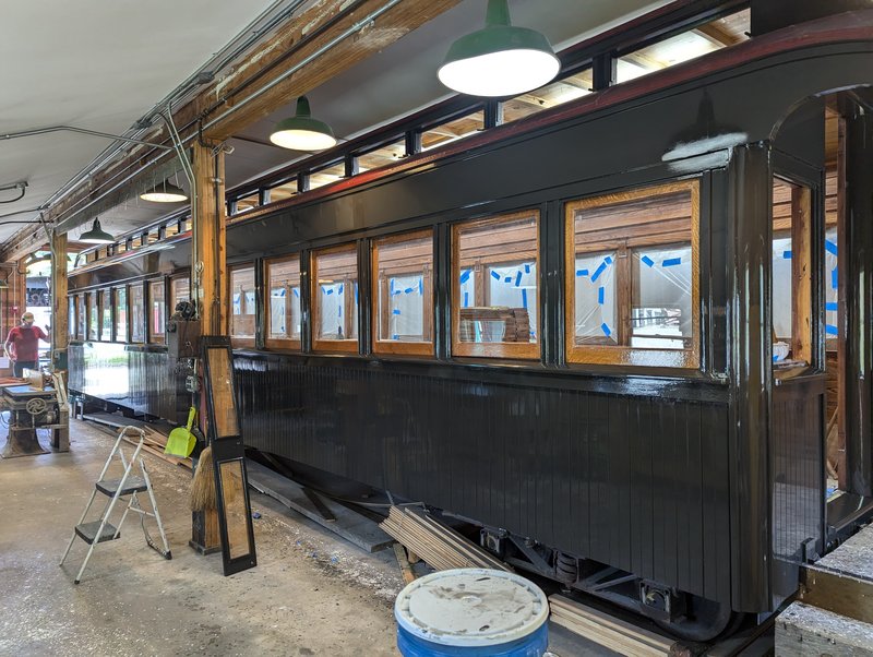 I really like the natural finish on the window frames.  I think as we do maintenance on our other cars that we strip and naturally finish those windows as well.  Would make for convenient wintertime projects if cars are kept inside the carbarn for the winter.