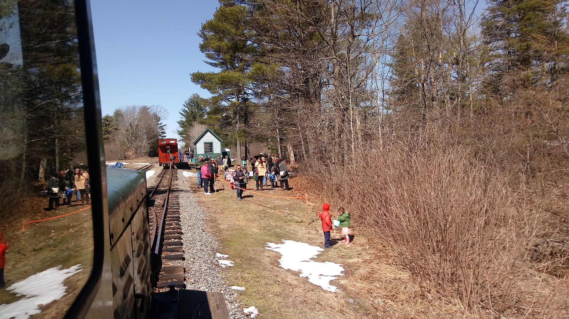 Trains depart every 35 minutes starting at 11:25am. The last train and egg hunt leaves from the museum's Sheepscot station at 3:30pm.