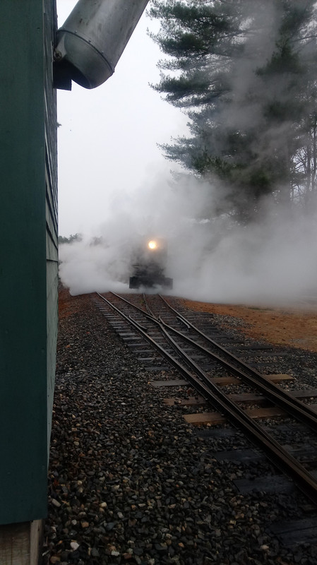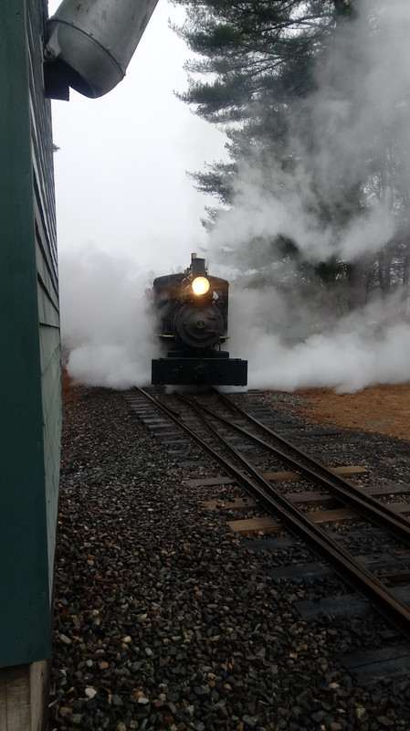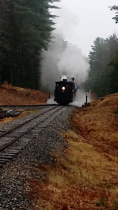 Later in the day, No. 3 runs around her train at a wet Alna Center.