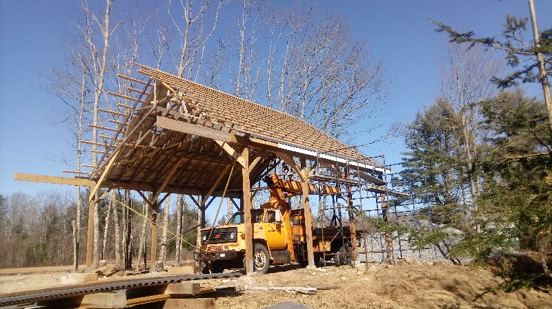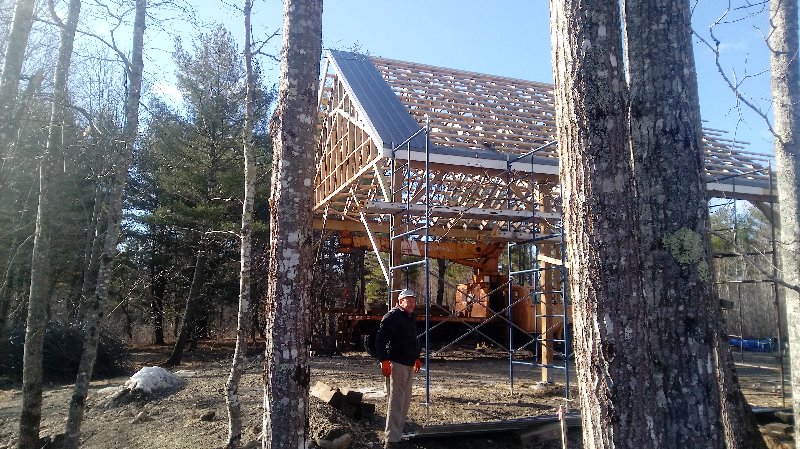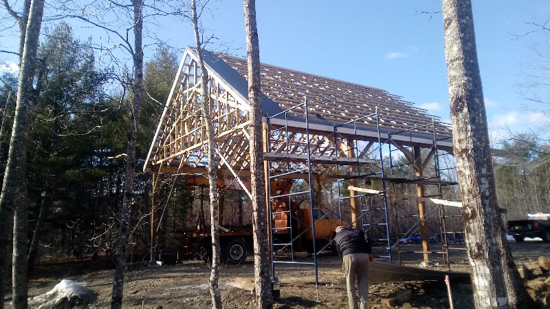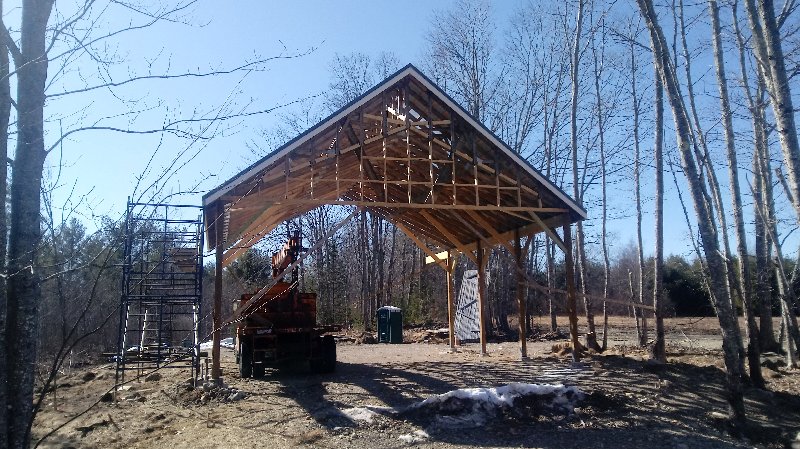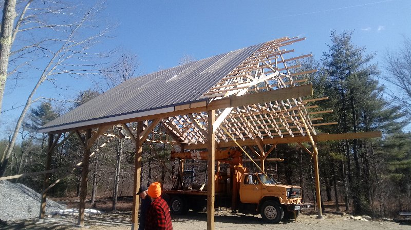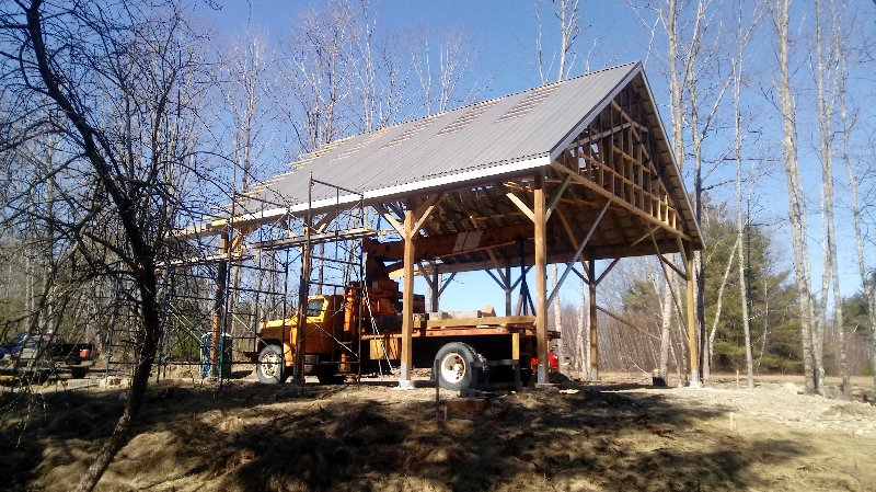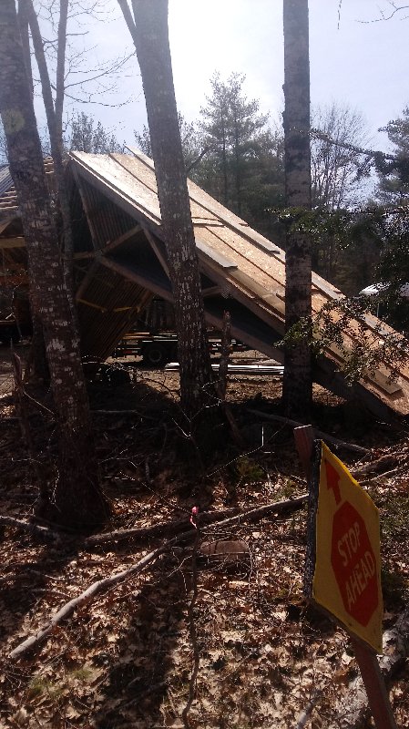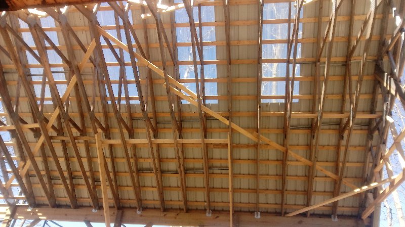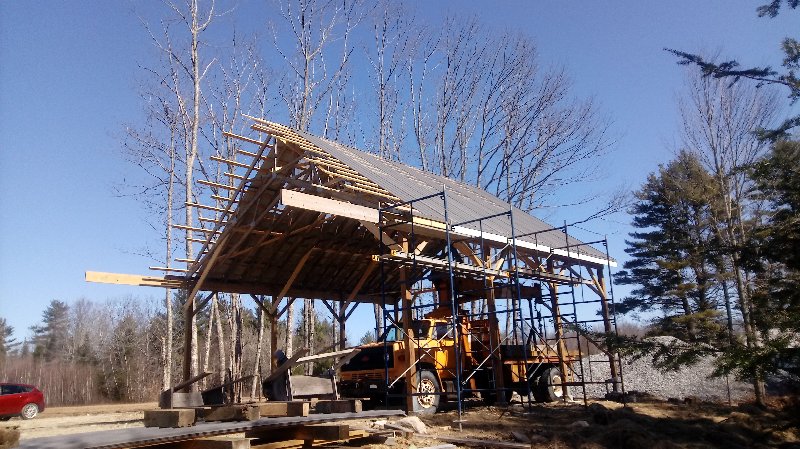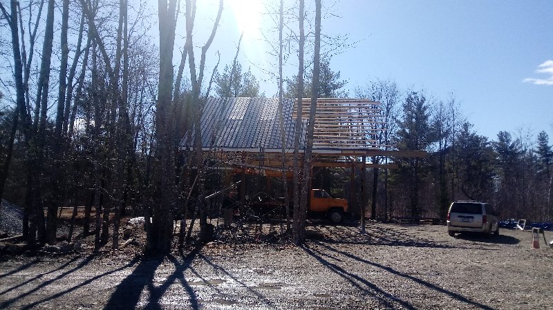 The siding lumber has been ordered, and we can put that up when it comes in. I am just concerned that if we don't complete the rest of the building this year, either due to the viris shutting everything down or lack of funding, that the trusses would deteriorate badly and become unusable. So a quick cover up this morning, leaving an air gap between the trusses and plywood, to buy us time if we need it.
