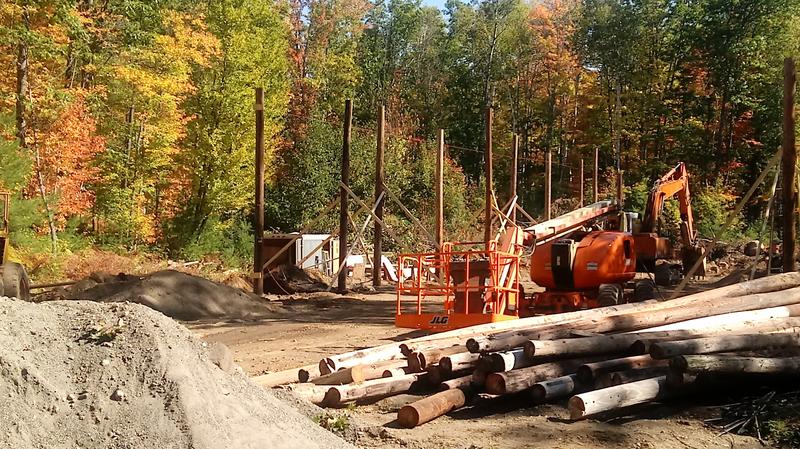Car Barn progress, being constructed across from the roundhouse. I heard them say they are using 40 poles to build this, with the corners set in cement. I am unsure if the rest will be.