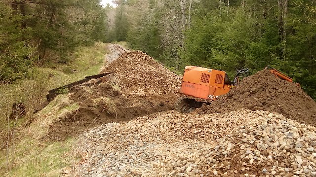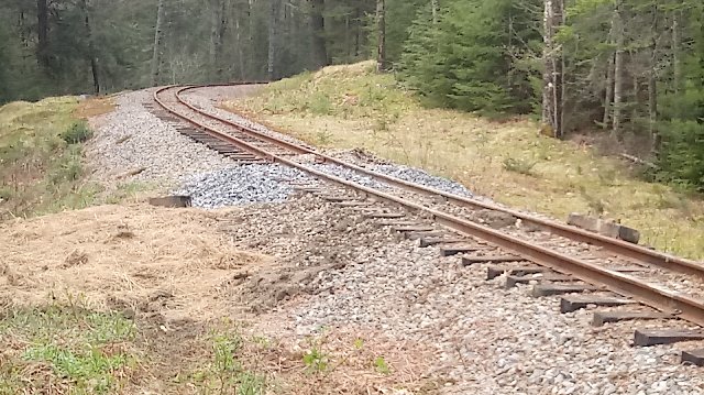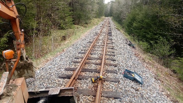 During the week, due to the lifting of some restrictions related to Covid-19, several volunteers arrived looking for something to do. On Wednesday, they installed the 4 new ties (the ones James and I removed were kind of punky) and dropped some ballast. They will jack and tamp when they can, and bring in more ballast.