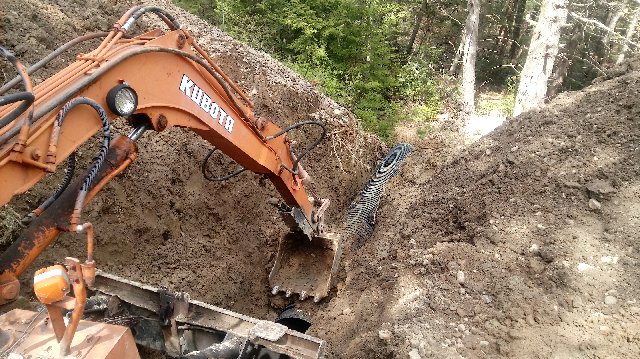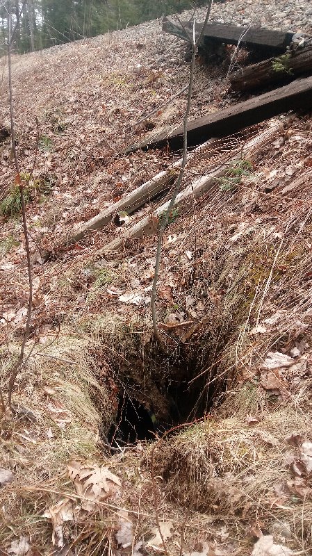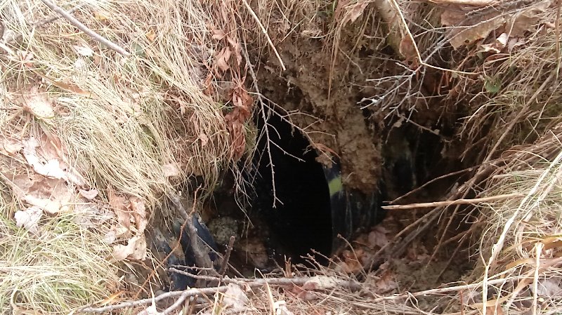 I think that in some cases the phone line passes over the culvert about a foot from the end. Other times it is at the woods line.