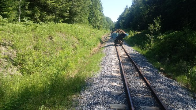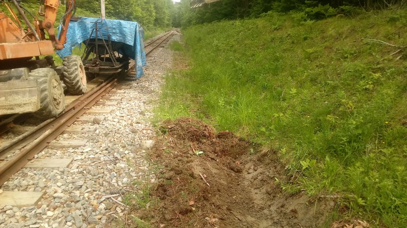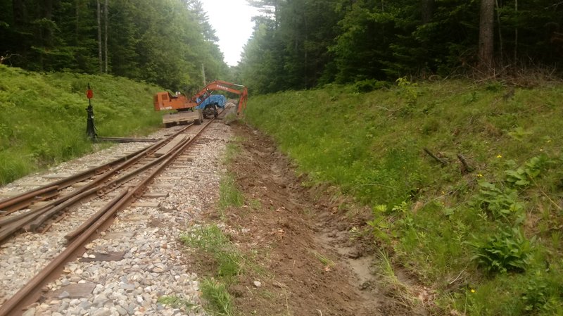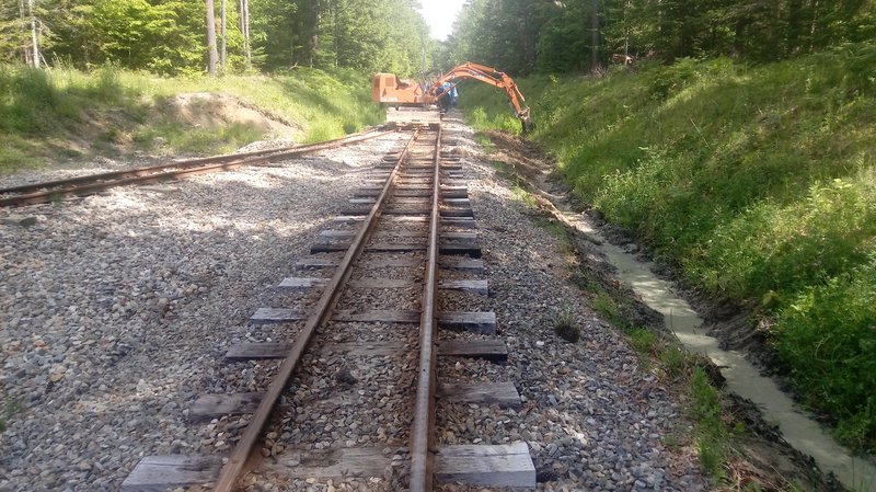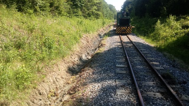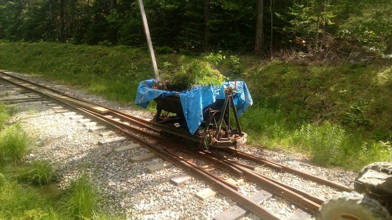 * Culvert replacement: Although finished with the culvert, Mike still needed to get material to the repair site. We brought the tipcar up and left it for him at Sheepscot Mills. He used it to haul material to the work site to dump. He's done with that.