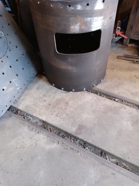 * Loco 10: Using the riveter they fixed up, Carlos and Jerry (and Alan) rivetted up a ring to the #10's smokebox.
