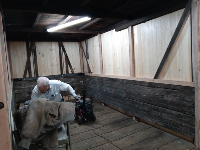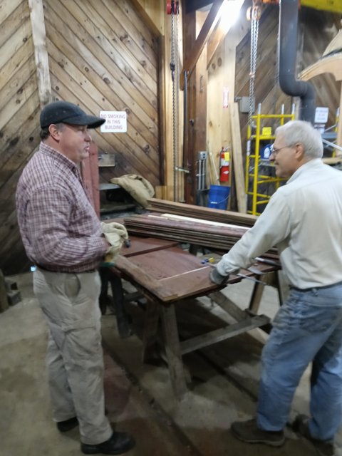 The only picture I took today. This is Ed and Marcel taking a break from stripping paint off old boards.