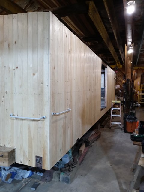 Once the roof sheathing repairs are completed, the car will get a metal roof, using the same technique Eric Schade and others developed for coach No. 9.