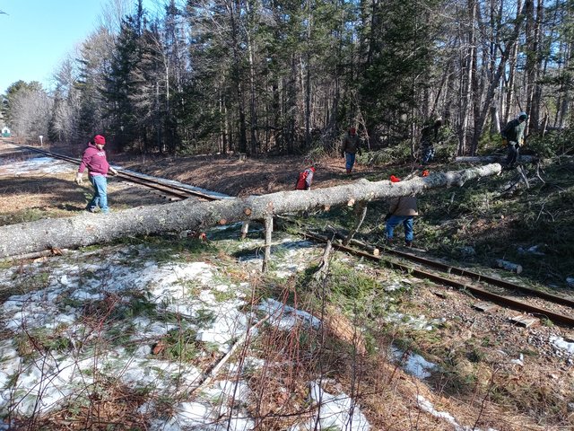 * Line clearing - a work crew cleared the line to Top of Mountain (including the big tree seen above), then worked back clearing off off-the-track blowdowns before running out of chain saw gas.
