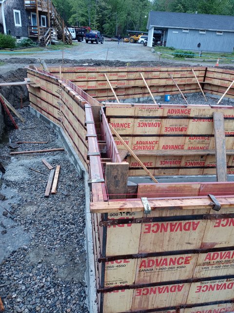 I'm not a concrete industry professional, but I found the stemwall forms (the flat panels with "Advance" all over them) shown in Brendan's photos  very interesting. :)  Mostly I'm familiar with wall forms braced with 2x4 etc  lumber, like this: