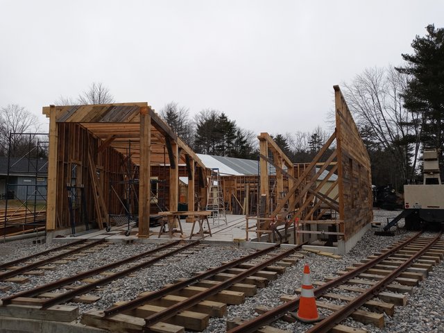Rafters over stall one are done.