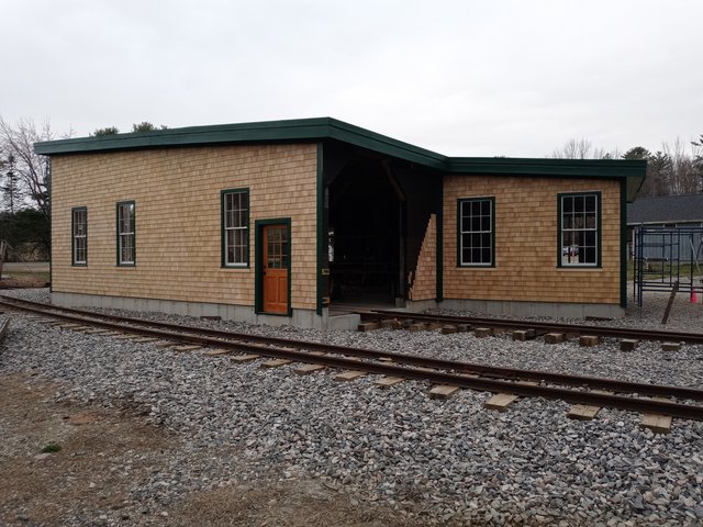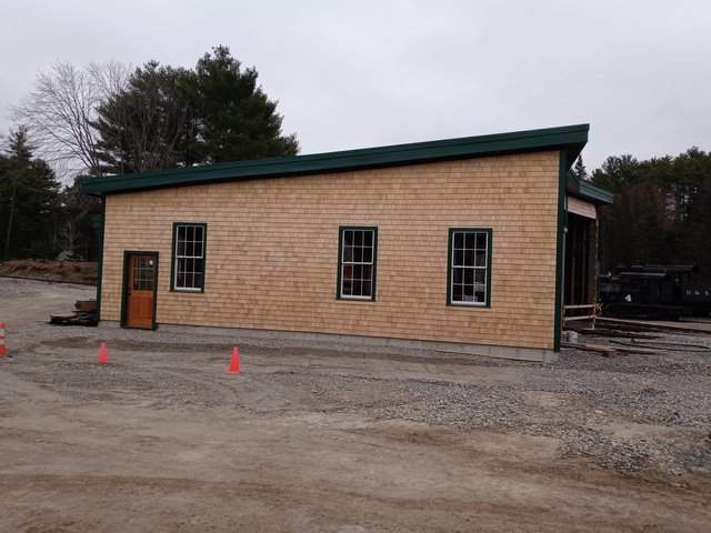The new engine house is a replica of the original W&Q/WW&F Wiscasset engine house so the window spacing matches the 1894 version.  Harry once explained that the window spacing allowed for a diagonal wind brace timber to be built into the wall fairly close to the center.  That's why there was no 4th window and there is a wide space between the second and third window.