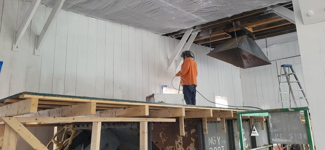 Wood sections of the ceiling finished. The rest of the ceiling will be metal.