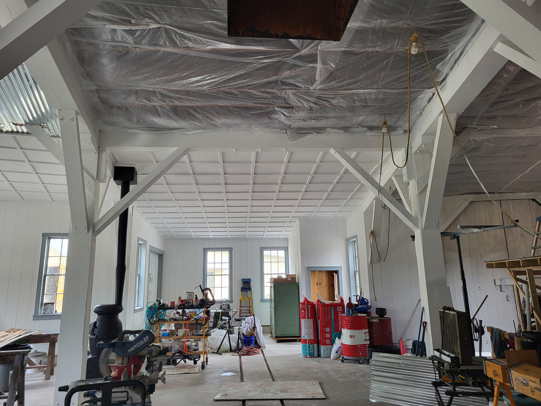 The engine house crew has finished the ceiling in the northern part of the center stall (minus fire retardant and paint)