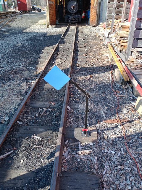 While waiting on the first new ties to be installed. Jason had the tamping crew work in the Sheepscot north yard. The ramp/woods track leading out of the car barn bay 3 switch was out of level. Here jacks are set and the west rail was raised.