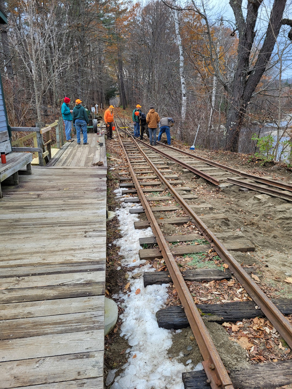 Last track to go into the new car barn. First Saturday in November 2022. The W.W. and F. crew will arrive about 9:00 A.M. Hope all plan to be there. Will leave Sheepscot Station about 7:00 A.M.