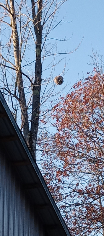 Leon Weeks and I were talking and he pointed out this nest. Wax up your plows, the snow will be deep.. See it in the tree?
