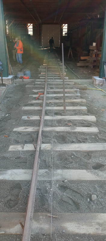 Meanwhile, work was going on inside the carbarn to get the rails out the door..