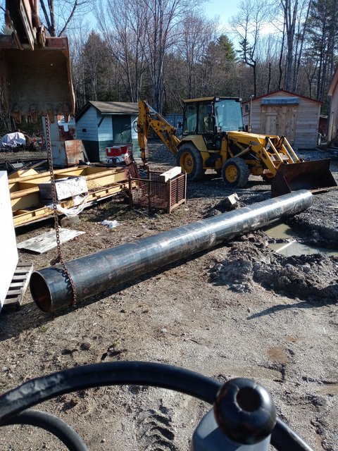 Whenever you want something, something else is in the way. The stack pipe for the enginehouse had to be moved to get the backhoe out.