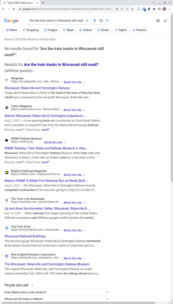 If it wasn't for those pesky folks at the WW&F filling up Google's servers with Museum references :o  the Wiscaset Realtor's search would likely be more relevant.  ;D