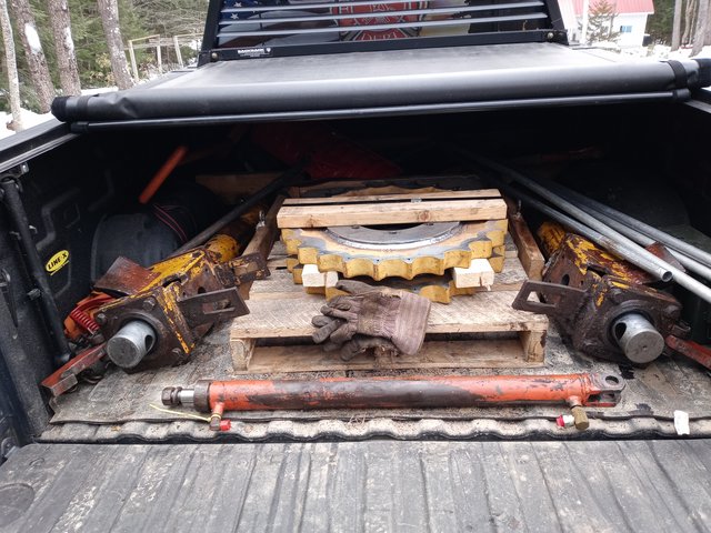 I got a phone call this morning telling me the dozer sprockets were done. So I told the guy I would get them today (while still on vacation) before the storm tomorrow. I had not been off the phone more than a couple minutes and my cousin called saying the tamper cylinders were ready. I hemmed and hawed about picking them up but figured now it the time. So I finished my puttering project and off I went.. I'll deliver on Saturday