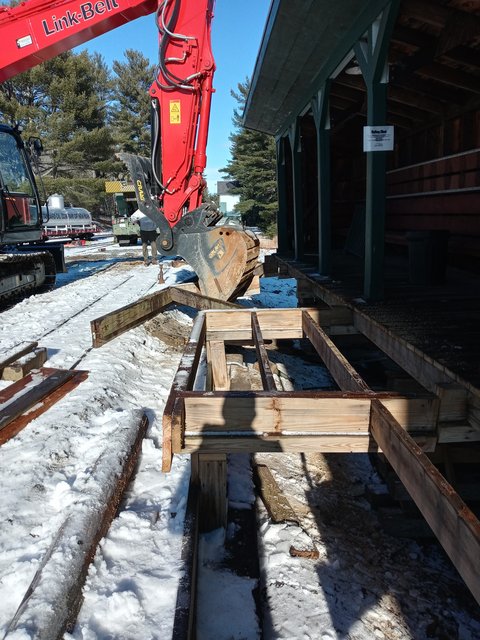 *  Freight Station work continues with pile driving, cribbing and removal of the platform frame