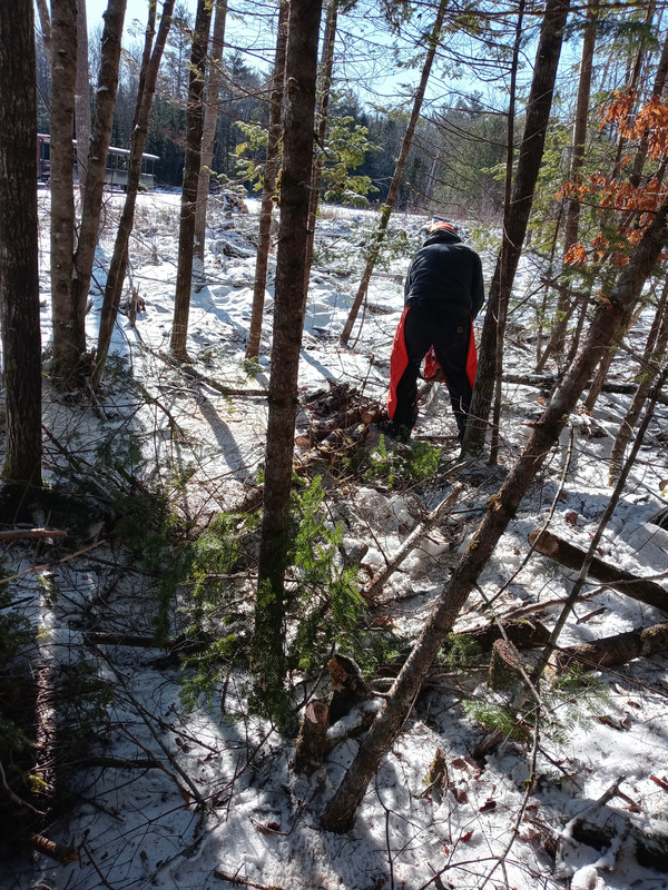 We managed to clear enough today that we could safely put a Shingle Mill building there this fall. 2 pines left to cut but was only Brian and I after James left, and neither of us had ambition enough to cut them. That, and a couple of wedges so they go where I want.. Fred also rode the first train and walked over for a visit.