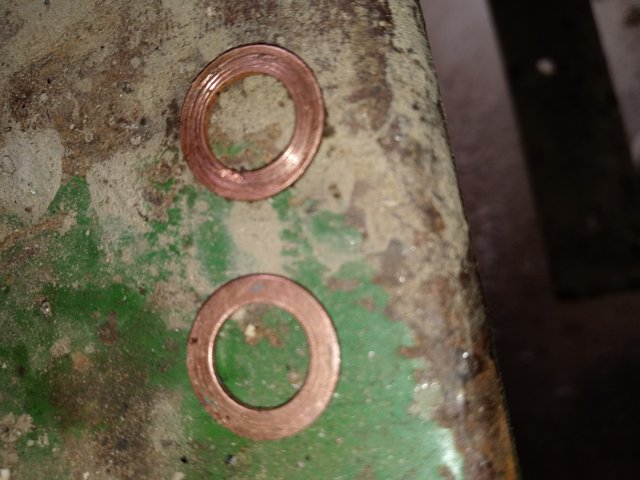 Freds tractor had a leaking injector line that I found last weekend. I replaced these brass washers with new and solved the issue.