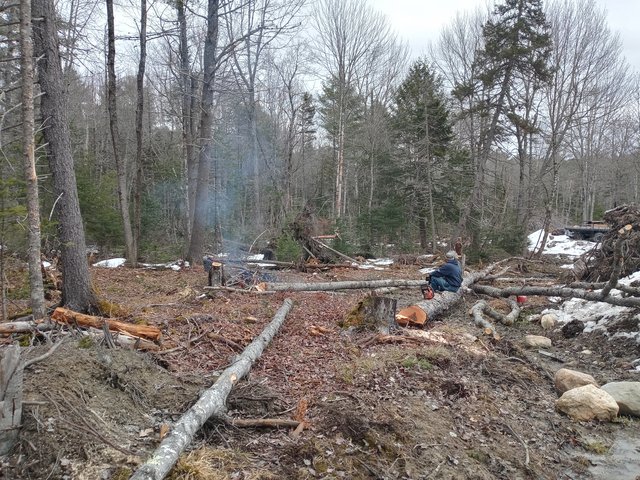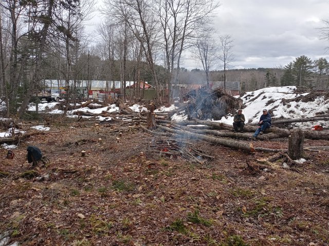 * Mike, Dave, Brian, and Stewart (and possibly others) worked on clearing (cutting/burning) more land for parking and storage.