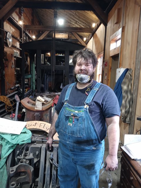 Dan and Roger were continuing to prep 9 for a boiler inspection, Dan having firebox duty..looking good.