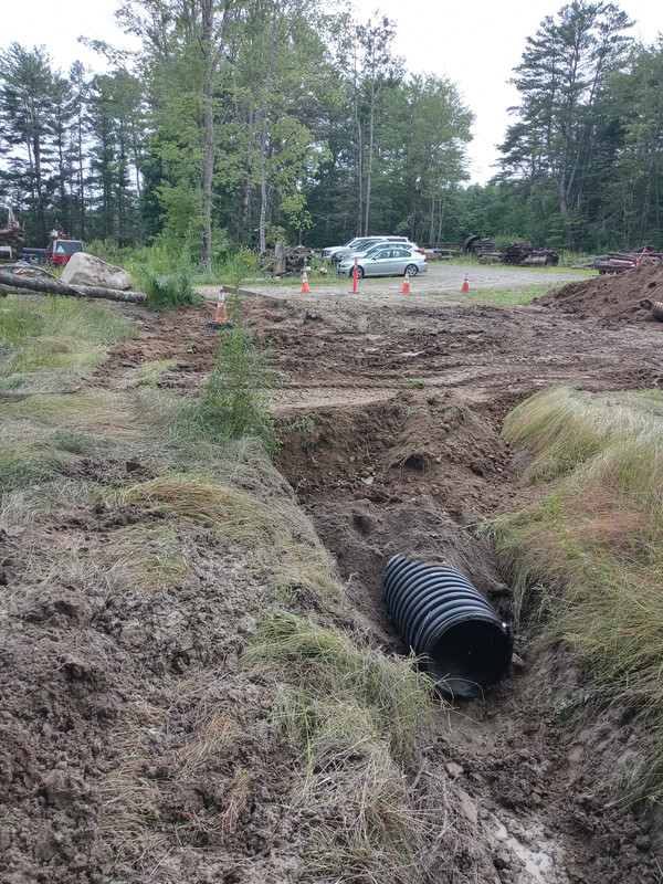 * Grounds drainage: Mike deepened the ditch by the west parking lot, then installed the drain box and culvert beyond, then buried them.