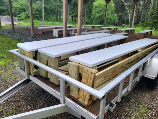 3 more benches were delivered to the Pavilion this morning, making 7 new benches this year. A 1/2 increase in seating (went from 14 benches to 21)