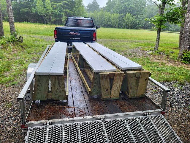 Also on the same load was 3 benches for the Sheepscot platform. I have one more to build but did not have room for it on this load without scratching paint.. These benches are only temporary until something permanent is constructed. Then they can be moved to where ever needed..
