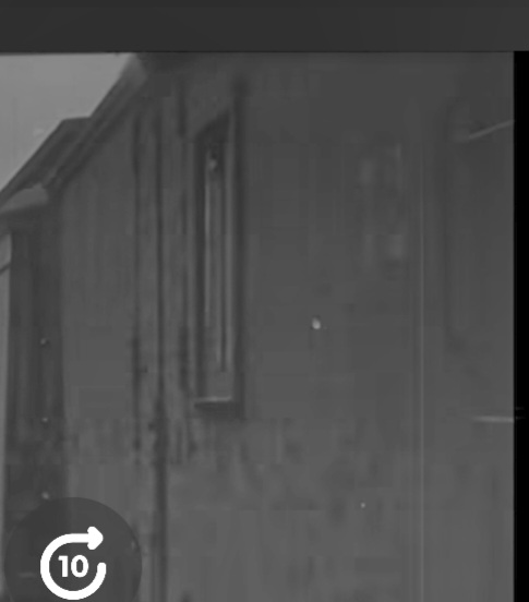 Ed notes that the train's a southbound from Albion. In the clip where the train is present, there are no milk cans on the platform, or the fellow sitting in the backround. When our lass and lad arrive on the scene, there's a big bunch of milk cans on the platform and our "extra" smoking his pipe.