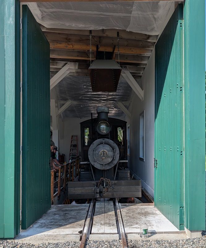 * Engine house - Stewart was painting trim, Brendan was starting to extend the metal ceiling in Bay 3.