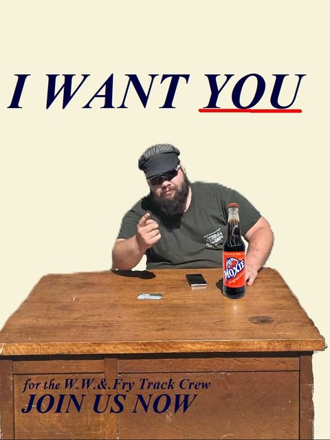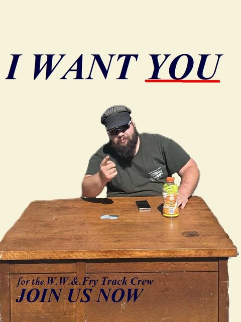 AGAIN THIS IS A CALL FOR ANY AND ALL MEMBERS WHO WANT TO DO TRACK WORK! WE ARE REPLACING 300FT OF TRACK ON THE CURVE AT HUMMASON!!!! we are relaying track during the work weekend!!!! any and all members who are capable and/or willing to do track work we ask that you please please come join us!! it'll be fun!! (note: we are relaying with the gantry crane) Dan and I (along with many others) have gotten everything prepped!! and continue to finish prepping!! we've got over 170 ties cut and ready to be laid down!! we've got brand new (ish) hardware for the joints ready to be bolted up!! and remember "WE WANT YOU! TO HELP KEEP THE WHEELS OF THE WW&F ROLLING!!"