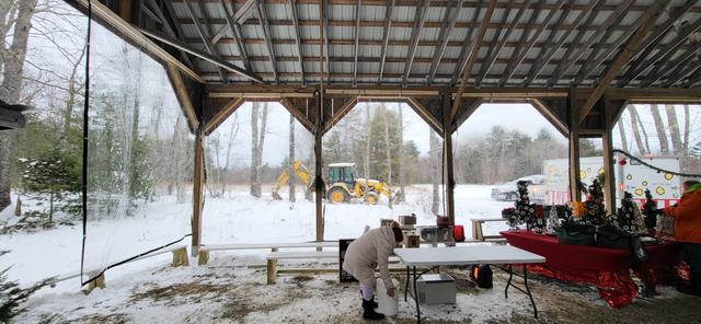 There was a very slight breeze Saturday with light snow for a good part of the day. There was a noticeable difference between the sides being down and the open ones that had no sides.  And all of the comments I got from the vendors were positive. I would like to come up with a good way to roll them up.