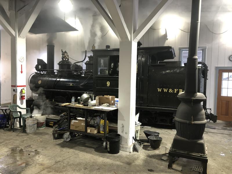 WW&F No. 9 steaming up in the Morse Engine House.