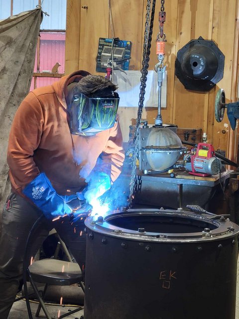 January 3rd, Bryce spent part of his birthday welding. Dans photo..